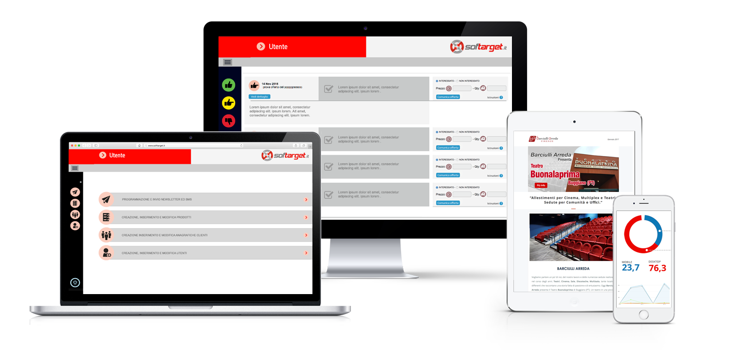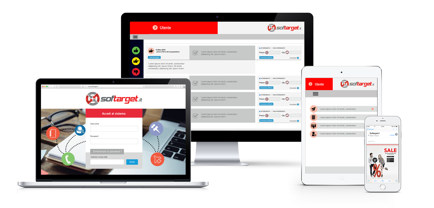 Utilizza Softarget sui dispositivi maggiormente utilizzati. Computer, Smartphone e Tablet, riducendo al minimo la necessità dell’utente di ridimensionare e scorrere i contenuti.