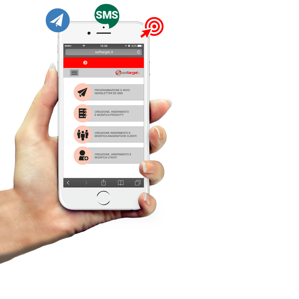 La piattaforma Softarget integra la possibilità di fare promozione attraverso gli SMS. Il canale SMS ha un altissimo tasso di apertura, fino al 98% rendendolo molto vantaggioso.
